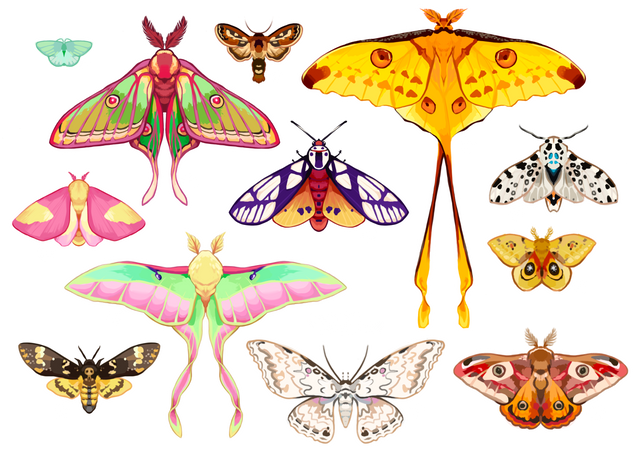 #artist #digitalart #drawing #gypsymoth #hummingbirdmoth #insect #lunamoth #moth #rosymaplemoth #wings #cinnabarmoth #illusstration #oleanderhawkmoth #art #colorful #digitaldrawing #digitalillustration #digitalpainting