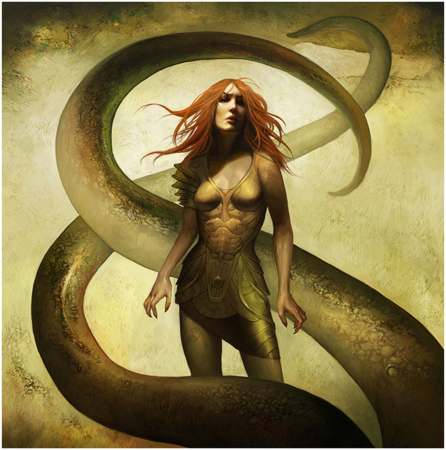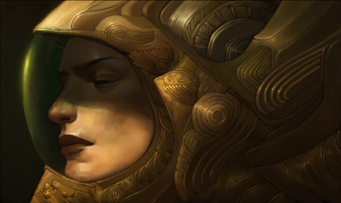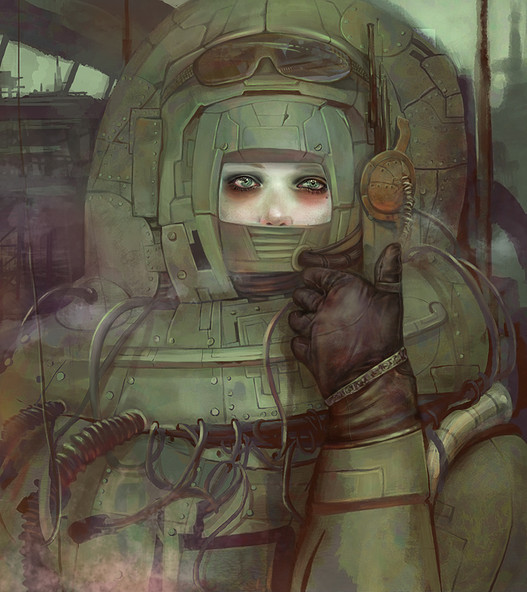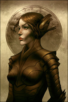 I'm especially entranced by that wounded eye, but also by the manner in which the hair is manipulated and tousled about by that helmet she's wearing.