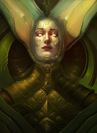 Ihre Rüstung sieht wirklich wie aus Edelholz aus. Und das mit diesem Samurai-Schwertgriff-ähnlichen "Ärmeldesign"... Das doch mal subtile, edle Exotik. (Diese feinen, straffen Falten in ihrem Gesicht finde ich ja auch interessant. Denn eigentlich wirkt die Frau noch recht jung...)