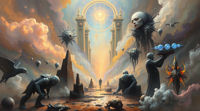 Oh, diese harten Schatten wirken gut. So krasse Hell-Dunkel-Kontraste! (Allerdings wirkt das Bild für mich dadurch erstaunlich aquarell-artig, fast markerhaft, und nur wenig nach Ölfarbe. oO; )