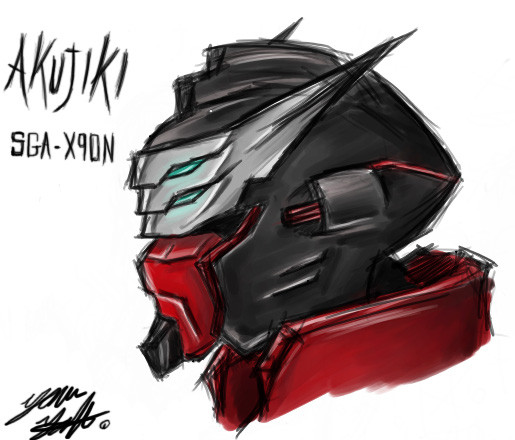 i put akujiki's hilt in his hand armor...so it draws out like the zaku's energy axe from the shiled...but it came out llike a gun XD