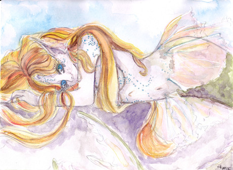 What a beautiful creature you've managed to captivate my eyes with. That glow behind her gives her a sort of heavenly aura, as if she possesses some mystical power or force. Sitting on nothing also adds to her elegance and potential inlfuence of unknown forces. I think I'm also attracted to this piece because a lot of the movement and flow you've got going on here resembles water. I dig water and it's ever changing nature. This is definitely a pleasure to the eyes. Thanks for posting it.