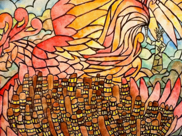I forgot to upload these. These are quick little portraits of each of my elemental birds. The only one that doesn't have one is Seabird - not sure why I never made one for him. These are pretty old though, so some of the details have been changed.Watercolor on canvas - what was I thinking?