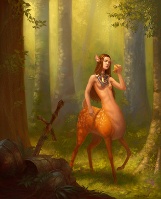 Agreed! Gorgeous and love the design. Vaguely reminds me of a Julie Bell centaur painting but much softer and more innocent. Head/face is by far my favorite part of this work, followed by the wonderful arms and torso. Hair is amazing. It would be an amazing painting even if it wasn't a centaur.