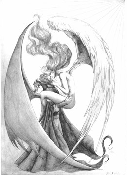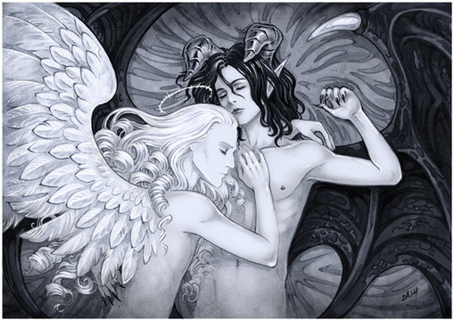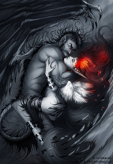 Amazing work with colour values here.... The mixture of realistic, abstract and almost art nouveau-ish style colouring creates a beautifully complex and enthralling effect. I'm curious about the flimsy thin chains binding the demon as well as the wide bracelets... Implying that he could free himself at any moment, perhaps?