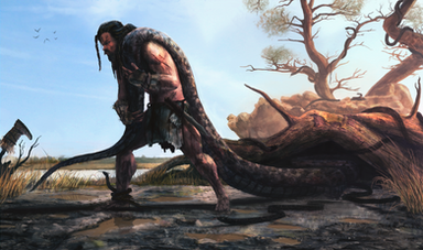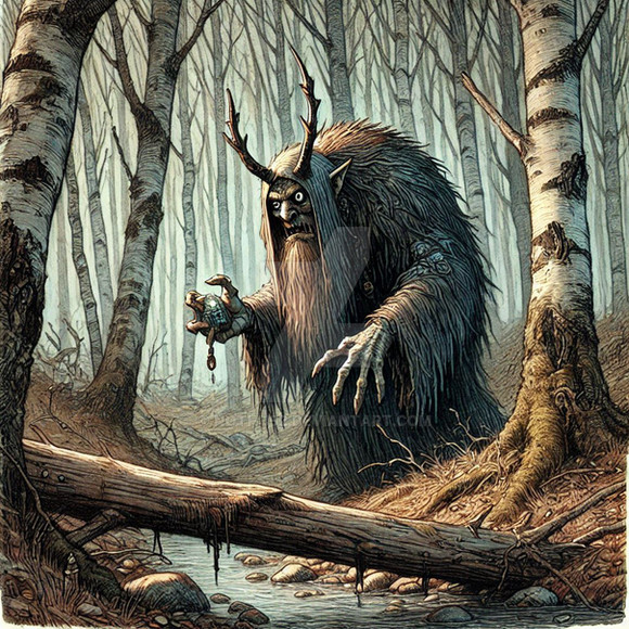 A troll feast on a salmon while light rain is coming in over the fjord.Related content
