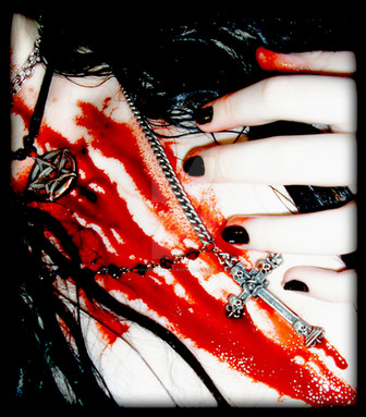 The newest obsession of mine: Stigmata. It fascinates me. The whole idea of it. Also an expressive portrait of why we, as humans, are so frail and fragile. Organized religion. Not belief in a god (do not confuse me and accuse me.), but belief in a dogma. Belief in a system composed by man. Man. If the only perfection is a god, then men are imperfect. Therefore, all things created by man are imperfect. Hence, organized religion is imperfect. We are imperfect due to the differing opinions among us. Religion is an opinion. It is an interpretation. "The Holy Bible" was written by man, was it not? Do not try to tell me it was written by the almighty, because, though it may have been spoken from the almighty (if you can believe that), it was interpreted by a man. A lowly man, at that. And that was in a completely different language. When translated to English, I'm sure a lot of things were missinterpreted. Thus the phrase "lost in translation." You can't get the same effect when switching languages. The basis behind this all-powerful religion (Yes, I am speaking distinctly of the Catholic/Christian religion. I don't know enough about any other religion to argue it.) seems rather intelligent. Keep everyone alive. Except the weak. God will take them. That goes along with our instinct. If we all stay alive, then we have more people to mate with and more chances to spawn. Alas! According to this book, we cannot have sex? Well...how does that fit in to the scheme of things? This book was written by a misanthrope! No sex? It's an end to the human race. How do we have children? We don't. Instead, we live our lives in service to this omniscient god. And in one generation, the human race would END. Religion goes against what we know to do. Though shalt not murder. Unless in the name of god. What if in the name of self-protection, self-advancement--in the name of self? We are god. We are what we worship because we are all that matters. But we've personified that idea through a storybook into a large white man with a beard. A white man with a beard whom you can only see if he wants you to, and whom you can hear inside your head. Let me put it for you simply: Religion is an undiagnosed form of Schizophrenia. No kidding. It was written by a man who was hearing voices. Voices that told him what to do, and what not to do. Voices that made him harm others. The Bible is in painstaking detail, and is thousands of pages long. How could a sane man do such a thing? He couldn't. The insane reign supreme. And the only reason for the negativity of that statement is the fact that the insane are self-consumed. Paranoia is a fear of everything but yourself. It's the idea of advancement of self taken to an ironic level. If you fear others, you can't keep your species going. And therefore, my dear public, organized religion was meant to kill us, not keep us going. In the end of all this ranting, you may find a twist, by the way. So keep an open mind.Anyway. Glad that's over with. I may be putting this piece in that big thing I've been telling you all about. However, it's kind of bloody. I tried so hard to stay away from the blood, but I couldn't. I like the effect I put on it with the lighting. To make it look very dark and almost like an amateur video of this miracle.