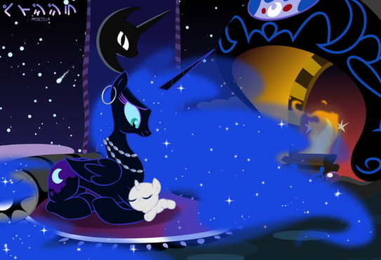 "Oh, Lu-lu, it was just a dream. You of all ponies should know that they hold no power." Celestia draped a wing over her younger sister, trying to comfort her. Luna sighed and looked away, the warmth of the fire and her sister next to her draining away as she remembered."No, Tia. This wasn't a dream. It was a Nightmare."