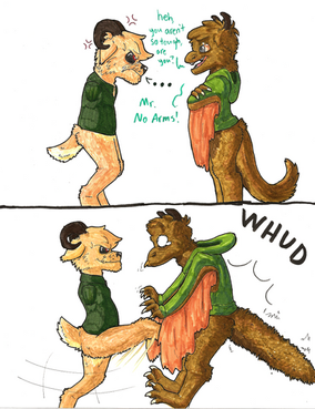 Seems very not-Mary-Sue-ish, right? WRONG!! Here's one more thing about her; see that question mark by her species specification? That's because there are a few things about her that suggest that somehow, somewhere in her family tree, there was a Non-Hekshanian. But which side that is is a total and complete mystery. She was a product of a one night stand where her mom was far too drunk to tell who was a Xeno or not, and her mom never told anything about her side of the family. The features of her non-Hekshanian bits are subtle, though. They're not often noticed until someone looks rather closely. Her nose is a bit more in line with her mouth, but it's not flat against her face; it's a bit like an almost-muzzle. She's a bit more strongly built than most other Hellcats, thus she's able to fight others in the ring and be able to win. Her tail, and the area immediately around it, are quite a bit fluffier than the normal Hek. Not usually noticeable due to clothes but in the boxing ring it's there for all to see, but everyone's usually high on some drugs or drunk so it's not normally noticed. Also it's quite a bit longer; it has a bad habit for dragging when she's in a depressed fit.
