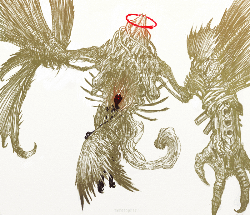 whoa... @_@ i absolutely love this insanity. its totally awesome--- the upside down angel in the bg, the hand, the dirtiness and barcodes in the bg-- oh god i LOVE your shtuff ((@_@))