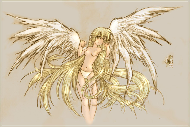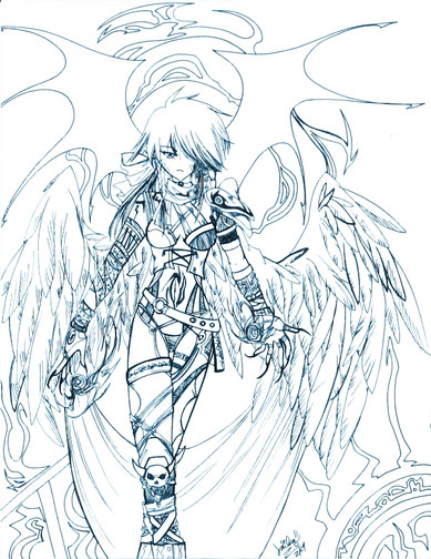 WOOOW... O_o.... uh, yeah, advanced critique... um.... the only thing I think could POSSIBLY make this pic any cooler is if her left leg was bent as if she were kneeling, with her right leg in the same position it's in now? I dunno, it''s just that her left looks a little small (I'm assuming it's because of the angle ^_^). Anyway, OMG. I love the things on her wings. They remind me of saddles. Wing-saddles, if you will.