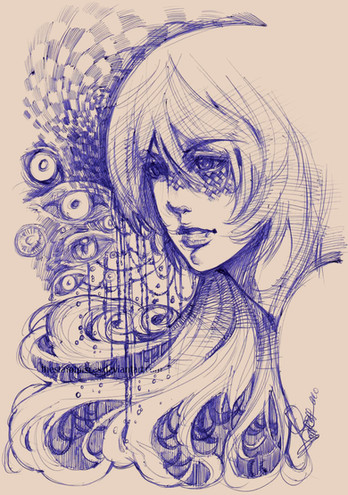 I'm drawing again. This is for my type and design class. The caption will read: "What we see now is a dim image in a mirror. Then we shall see face to face." It's from GITS.Pencil sketch on cardstock, dirty effects by playing with the Exposure Adjustment in HP Pavilion scan. Color with Photoshop7.