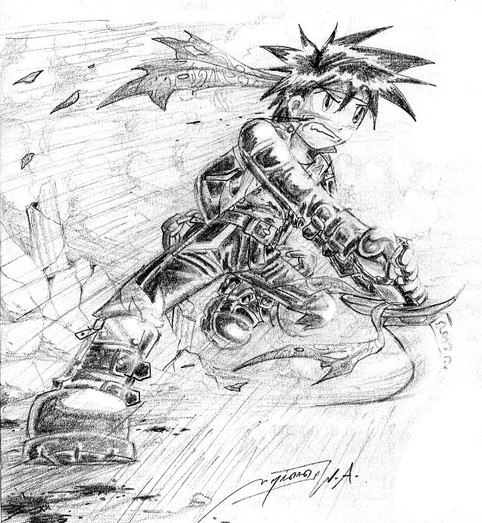 very cool. If you want some advanced critique though I would suggest making this character stronger. I don't really see this kid even being able to lift that sword. Very nice though!