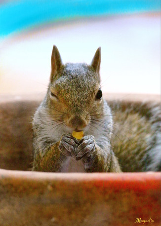 Perfect shot! Maybe after that, the squirrel enjoyed eating his snack.