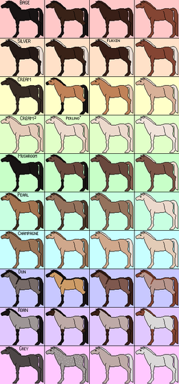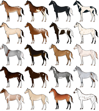 Well some of them anyway. I'm doing a horse tutorial and decided to make some colour samples. It wasn't my most brilliant idea, anyway, these are the ones I have to far and they arn't in any particular order. Each one is pixel shaded and I'm beining to get tiered eyes, but it's woth it.NOTE: These are not free use, they are copyright to me and will be used in my tutorial, don't steal them.