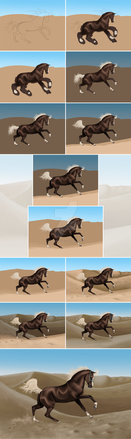 Using the same brushes and techniques, only on a smaller scale, I add tone to the mane.