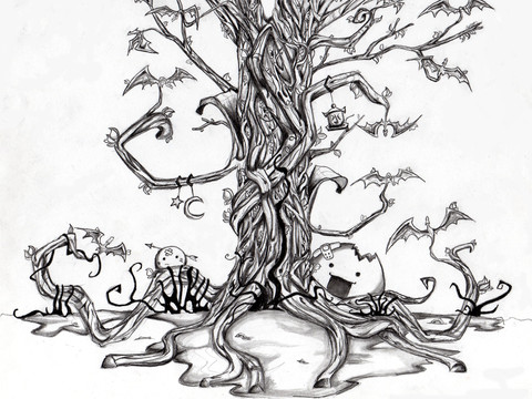 I love your penwork. The wings on the rook seems out of place though. It's got this cool beetlejuice/nightmare before christmas vibe. But then...white angel wings. Is there a thought behind it? (not trolling)