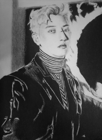 9x12in Ink, Charcoal, Graphite, Gel Pen on Bristol Vellum PaperReferenced Exo's Love Me Right