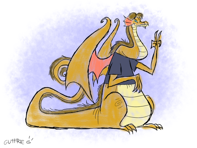 Also when I say there's very few dragons around I don't mean they're going extinct: Édouard just happens to live on an small island with the rest of my Magimalia crew. Dragons tend to just live elsewhere on the planet. Notably he came to that island specifically to look for that particular hoard decades ago then sorta vaguely gave up. Édouard likes the nice quiet life so that's why he just kind a stayed regardless of being one of the only of his kind around.