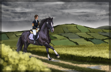 Zoey started grooming Caliméro and put on his tack. She decided to have their training session on the big field, next to the cross country course, where she also could see Joel trining Michonne at the race track, because she also had a crush on Joel.