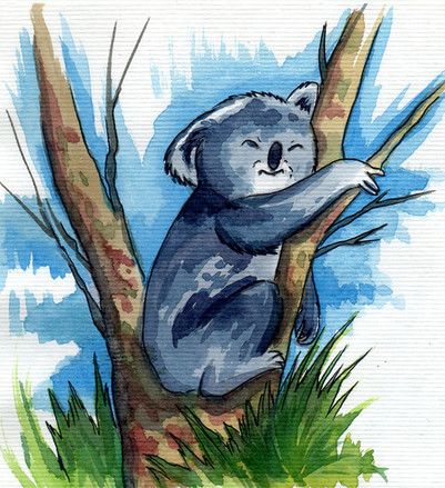 #australian #background #digital #gum #kangaroo #koala #oil #outback #oz #painted #painting #realistic #scenery #shack #tree
