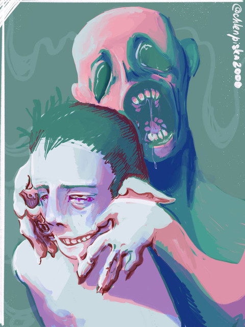 #artistic #colorpalette #creepy #digitalart #eye #face #innereye #innermind #me #myart #orange #purple #warmcolors #facerippedoff #art #fancytonic
