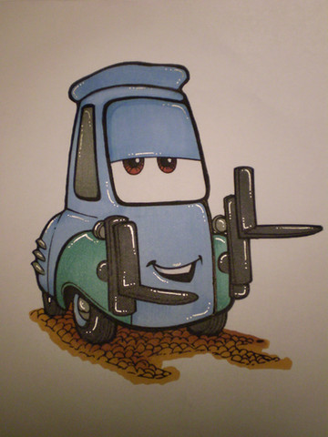 Here's a Guido from Cars the movie. He is a blue Italian forklift, he mostly speaks Italian, but does speak English a little. He works at "Luigi's Casa Dela Tires". And he is Luigi's parter.fav.me/dcywdbl