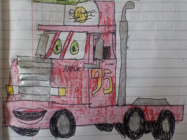 Here's Mack from Cars the Movie. He is a red semi truck, and is McQueen's driver for when he has to go for a race.Cars © Disney and Pixar