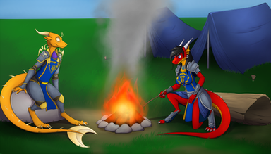 #anthro #camping #dinosaur #dinosaurs #dragon #dragoness #fantasy #medieval #raptor #riding #soldier #sunset #anthropomorphic #digitalart #knights