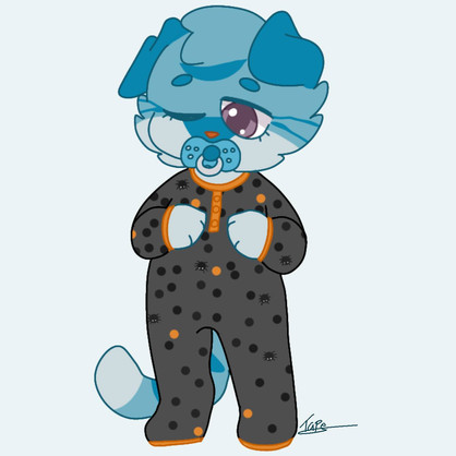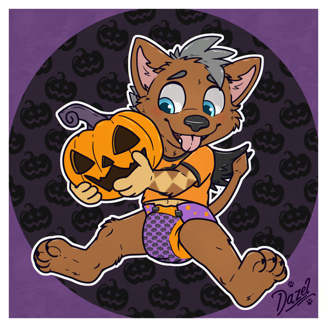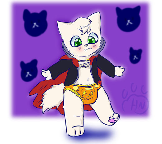this is my 7 year old cabbit sona, Leon waving hi to you all after he was changed into a new diaper for the day and his mother dressed him in a cute halloween themed onesie.art is done by the awesome Userpage of strawbsplayroom -- Fur Affinity [dot] net on furaffinity