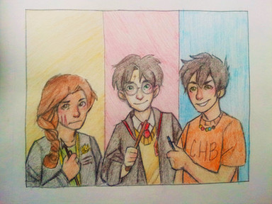 i'm on the last book of the sseries ^w^ had to draw the trioRelated content