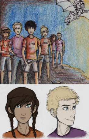 Aaah, I love it! It's great how you did Annabeth's knife, and her hair, and Percy's fab too, and...well you know what I think about how you draw Grover, amazing!