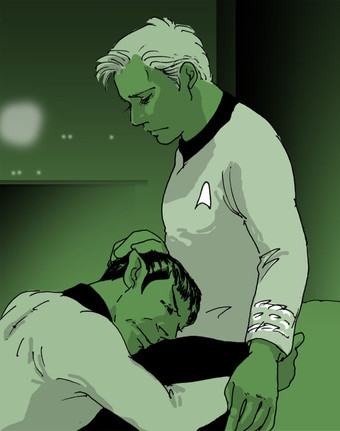 I realize Spock is hurt, but his spine is broken....Or his hips aren't angled right. I cannot decide witch. Great likeness of both characters, but something is very wrong without Spock's hips and spine meet.
