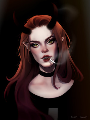 #lunaandnova #tombagshaw #conceptart #demon #digitalpaint #fantasyart #painting #paleskin #portrait #portraitgirl #portraitpainting #portraiture #succubusgirl #girlwithhorns #visdev #lunaprincess
