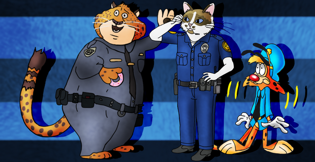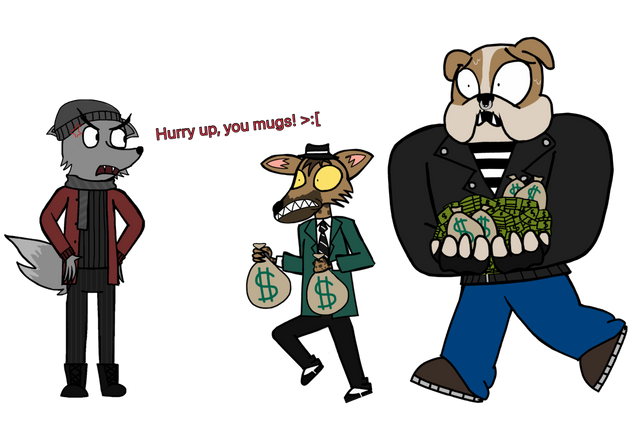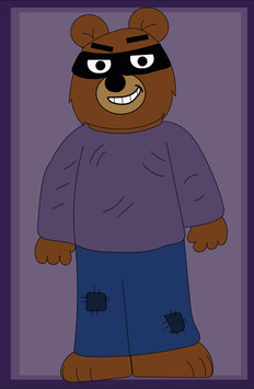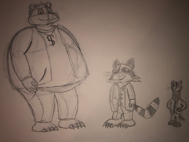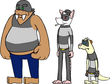 Here is The Three Crooks, in digital art.The Bear's name is Bruce, The Raccoon's Name is Larry, And The Ferret's Name is Robbie.