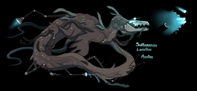 the Sea dragon is another one of texxan's wild life that is typically tamed by the inhabitants of the planet. they are usually tame creatures for being so decently big, (around 8 meters in length and 3.5 meters in hight)they are fast mounts that can go up to breaking land speeds way over Earth's fastest creatures, making them get versatile as travel mounts. even at their speed of approximately 200kmp, they can smoothly traverse terrain without much issues since they can hover above anything without any interruption, allowing them to each their top speeds quicker.