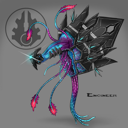 the Space Manta is one of the scarier more weaponized creatures that live in the vast Astrosea. these creatures fly through the air at high-speeds with an error red spotlight scanning over the entire area. they are primarily used for surveillance but during the recent war they have been used as Stealth and Destroy units that scout out large areas of territory.these mantas travel in groups of 8-15 and once something is spotted in their terrifying red spotlight, they will all converge into whatever they spotted and kill it with brute force and explosive rounds of missiles.