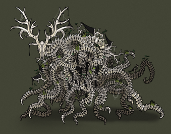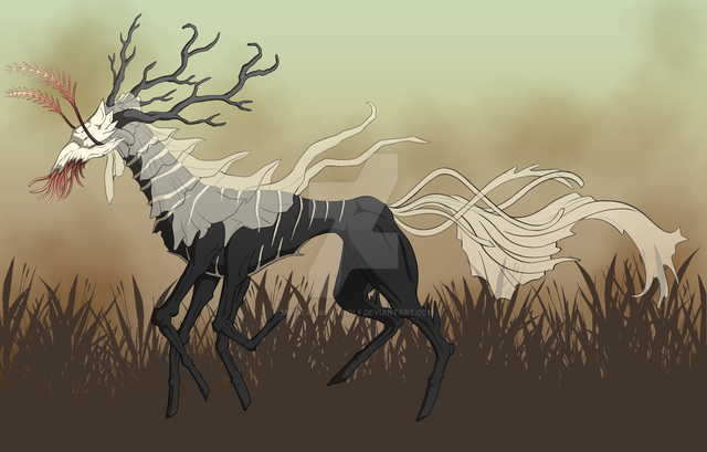 The Forest strider is the tallest hybrid species of Kirin and Drake that lives in the forest. They are the hardest to find desbite their massive size and presance, but they live standing mostly still thought their lives and move rarely.They use their tall legs to mimic trees and vegetation, allowing them to hide in plane sight. They feed off of tree leavea and fruits they can reach.