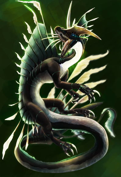 The Quetzilant is a creature native to the magic forest, and is also the mist faes natural enemy and rival. They are one of the few dragons who can clear through fog and can easily read a Fae like an open book. They are quick on their serpent like body, and attack with their massive middle claw. Due to their size change within the forest, they can create shockwaves by abusing their compressed mass using their claws. They are also one of the few tribes who have a chief instead of a king or queen.Related content