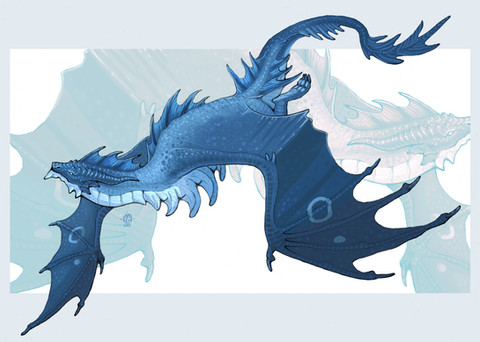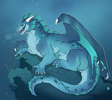 while sea drakes dont breath fire or have any sort of chamber, they are an intelligent species that has learned the use of magic to further their progression down in the ocean depths. they have developed lots of the modern technology that is used in the surface world, though they prefer to be an antisocial species that stays in the dark.