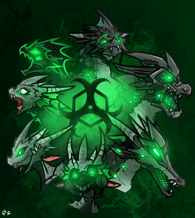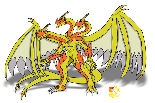 The Torbernite Ghidor is a sub intelligent wild species of wyvern/hydra (named Ghidor after Ghidora) this is the most dangerous creature to encounter in the wild. They are found deep within mountain caves, lurking in the shadows. There are limited numbers of these beasts, and for good reason. They passively radiate a radioactive aura that sickens and poisons dragons around them, making them deadly to approach or be near. They double in size to average dragon hight (10 meters). Their three heads all have minds of their own, but they can work well together. Their massive wingspan also allows them to take flight and smash through tough surfaces as they have the second hardest scales of any draconic species. Of all the things, this is most dangerous.Related content