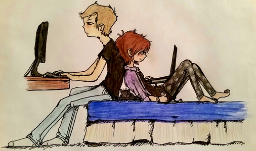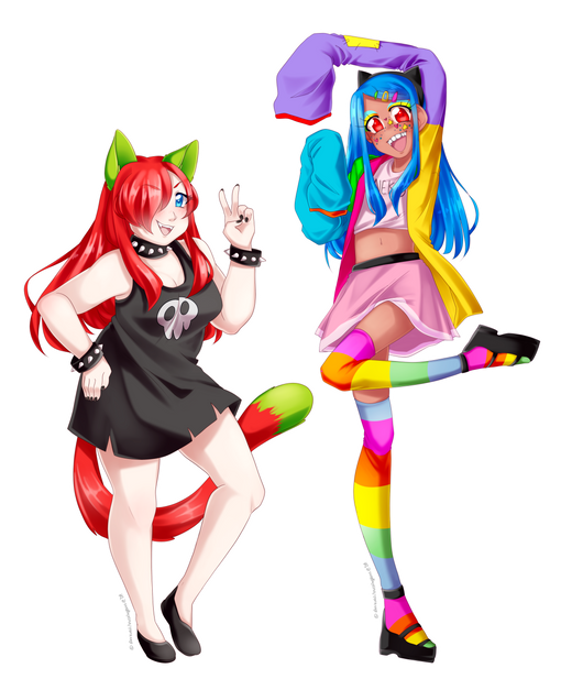 Look, some of my other characters for once! This is Sasha, and I forgot the names of the other two *nervous laughter...* Just a group of vampire friends casually hanging out at a vamp café after Sasha's cheerleading practice.I swear I was gonna do more of a legit background but I had no plan for how the café would look so my motivation for that yeeted itself out the window.