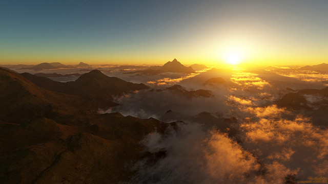 #3d #landscape #landscapescenery #light #mountains #pathfinder #render #sunset #traveler