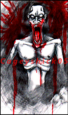 Lol! This reminds me a little bit of the green goblin! This portrays a sense of movement which I find amusing, almost as if the person in question sees the world collapsing upon him? It's very disturbing (it's excellent) and the blood splatters make me think this person's," disorder", has not ruined only His life.
