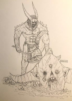 #baron #dark #devil #doom #drawing #elemental #hell #horror #ink #knight #lineart #linework #monster #pain #terror #videogames