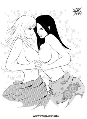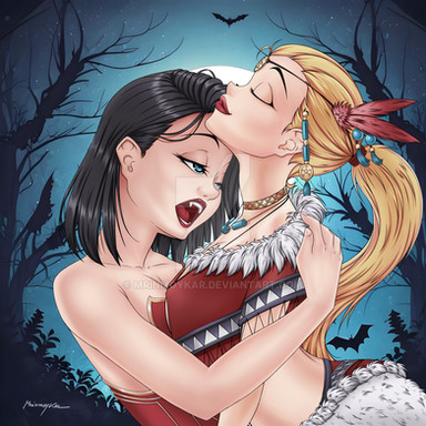 #anime #blonde #brunnette #drawing #fight #horny #hot #manga #painting #sexy #struggle #topless #vampire #vampires #wrestling #digitalart #illustration