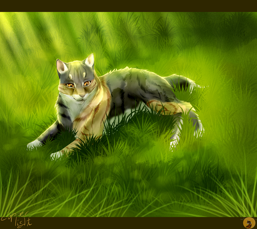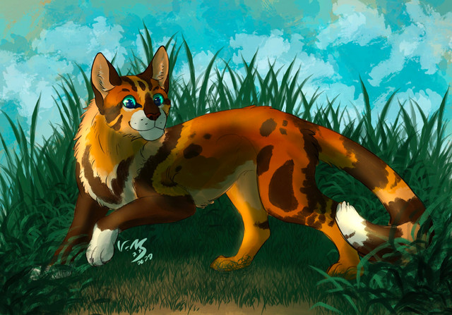 Leafpool was my favourite for a long time and I still like her. I really enjoyed drawing this.I am really proud how this came out. Not only I tried to draw a cat fulbody from the front for the first time, I also never drew a single leaf. Sure, her anatomy is not correct and her paws look ugly, but overall I like this.
