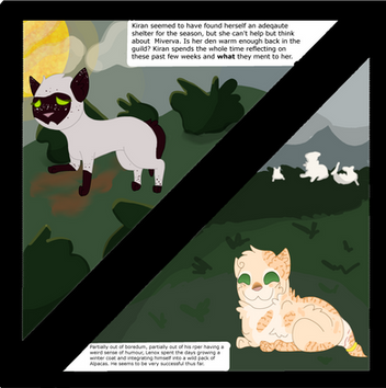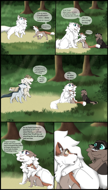 So, this Picture shows the good old times, when Dovewing and Ivypool were Dovepaw and Ivypaw. Their Mentors Lionblaze and Cinderheart took them out for some Training and have a good talk, while the apprentices train fighting techniques. Sorry for the bad english. xD
