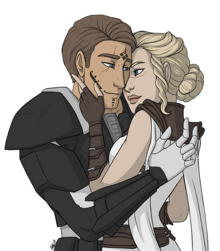 Atton Rand and Natalie, the exile who insists she isn't a Jedi (but still dresses as a painfully obvious one).Re-starting KotORII because I finally got my good computer working again and I can download the extra content mods (I haven't actually finished the game yet so no spoilers, please). Hopefully there'll be more Atton dialogue. I just love the way Attons mouth moves. Has anyone else noticed that?
