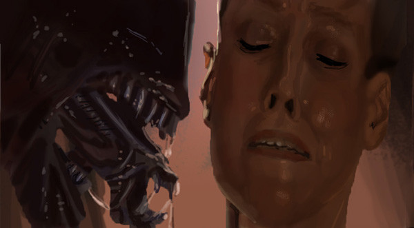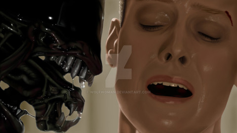 i agree! and it's pretty impressive how you've managed to make the highlights on the alien different than in Ripley's face - one can really see that the alien's skin is much much smoother and glassier